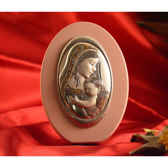 RL1790 Italian Silver Mother and Child Icon Made in Italy icon on a wood stand (PINK)